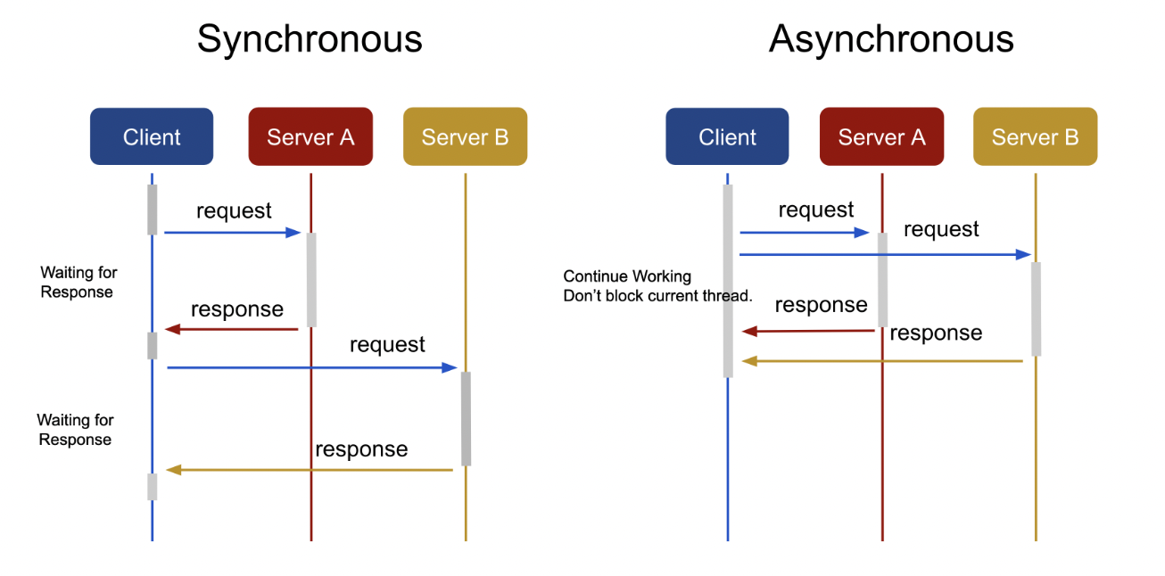 - 단점 : 요청에 대한 결과가 반환되기 전까지 대기해야 한다.