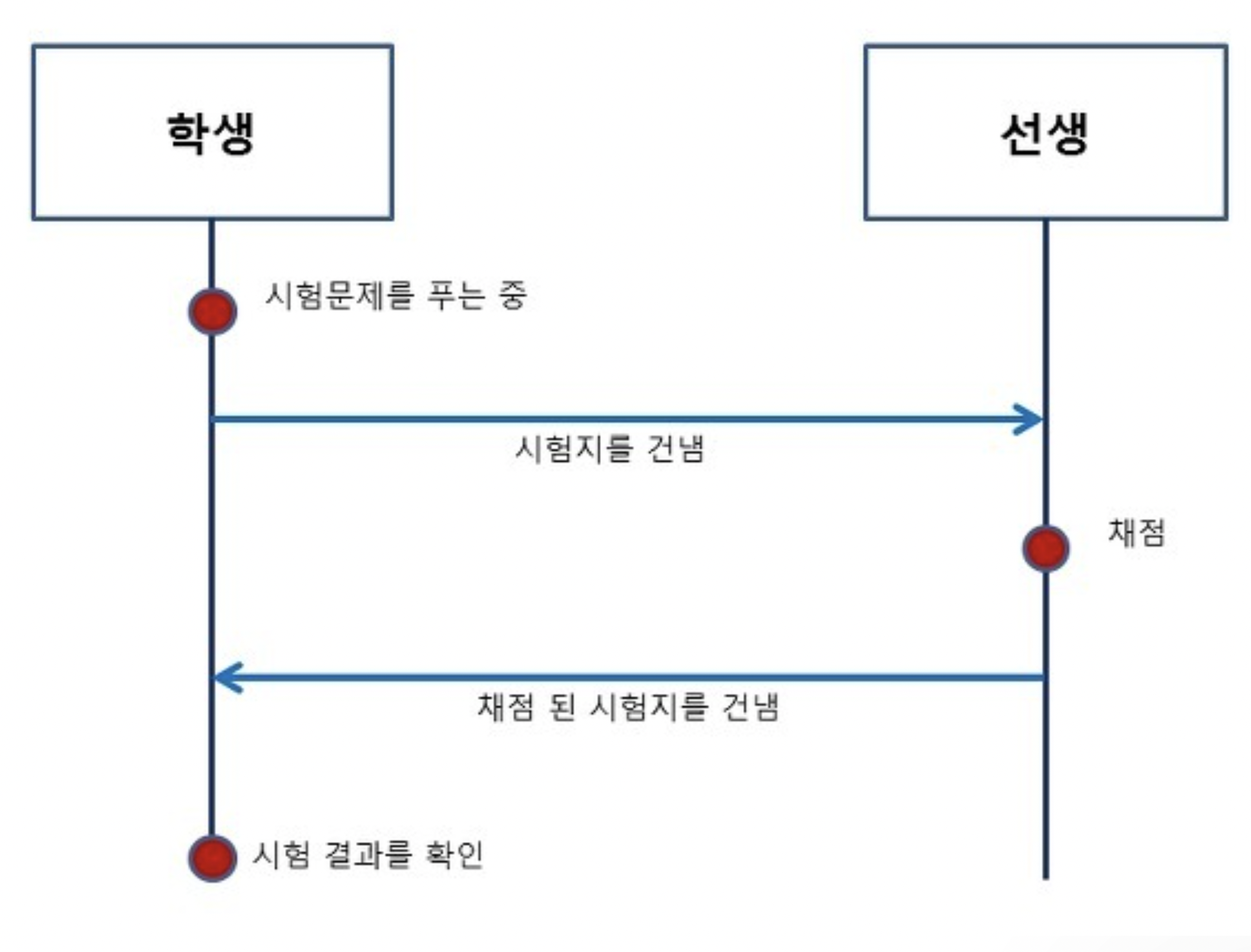 3.선생은 학생으로 부터 받은 시험지를 채점한다.